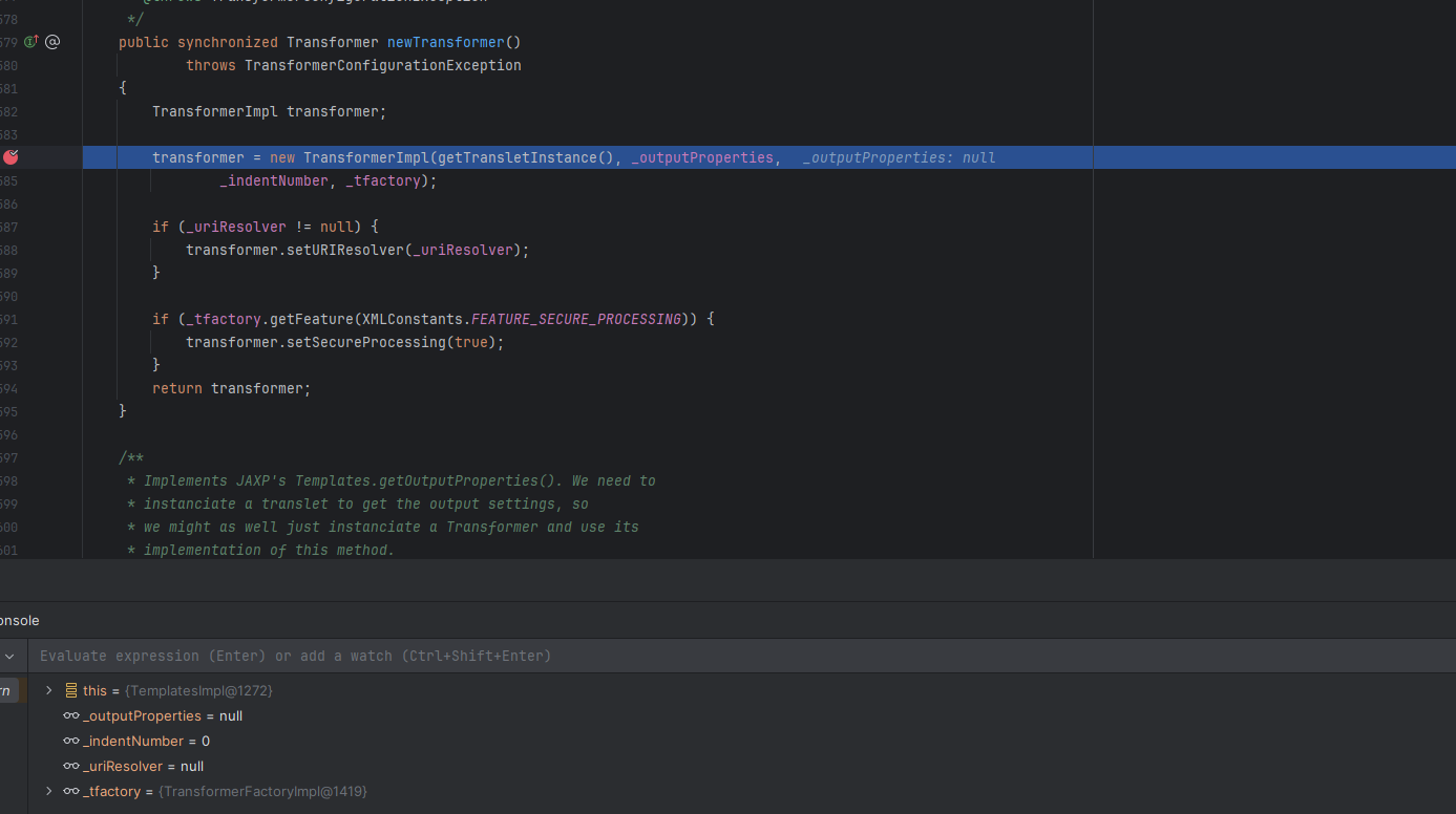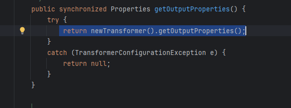 This is passed to invokeMethod(). Once it invokes getOutputProperties(), this is going to invoke newTransformer().